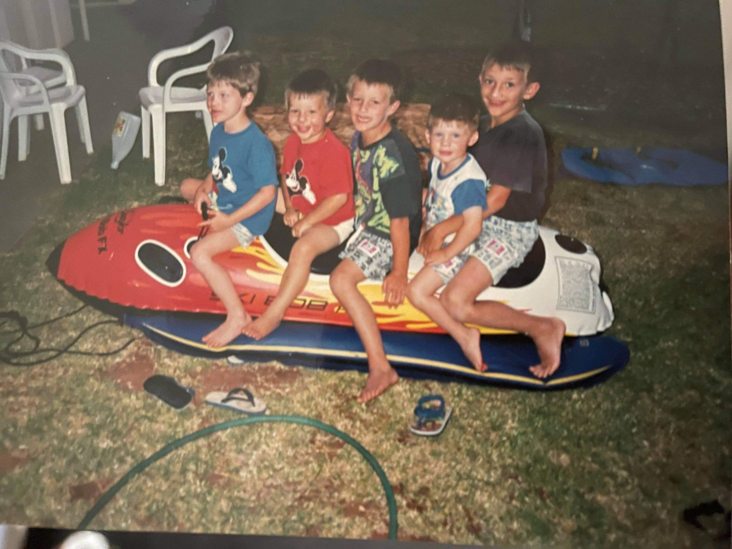 Our founders and brothers Adrian (second from left) and Tyson (third from left) living the water life with their cousins in 1995.