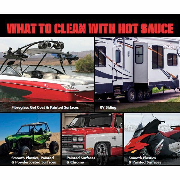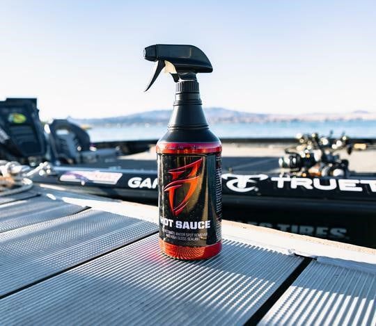 Bling Sauce’s #1 selling product, Hot Sauce, is a spray detailer on steroids. The unique spray-on, wipe-off formula has the strength to cut through hard water spots WITHOUT stripping your wax. Hot Sauce contains sealants to help maintain your wax coat while leaving a streak-free, show quality shine.
