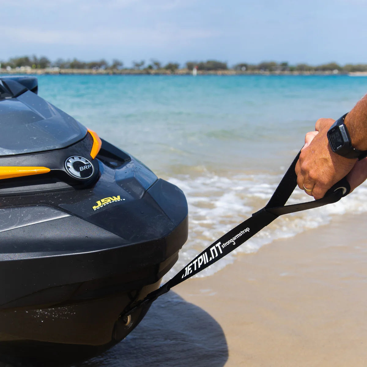 Originally created to help truck drivers pull awkward tautliners, the Jetpilot x Strong Arm Strap has multiple uses including dragging skis off the beach, pulling ladders off of roof racks and draging heavy items when camping.