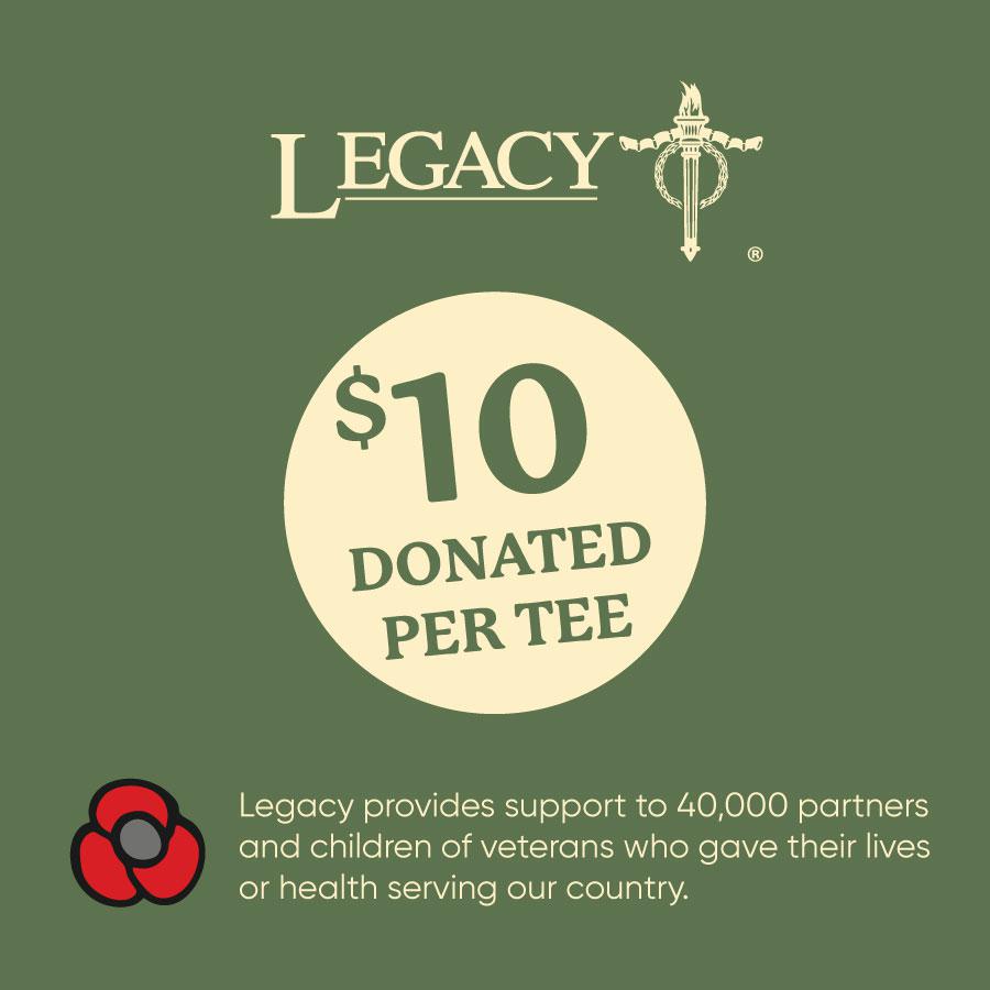 The Legacy Tee features a striking design that captures the essence of rememberance. With meticulous attention to detail, the tee proudly showcases iconic symbols of bravery and unity, reminding us of the courage and camaraderie that define our veterans.